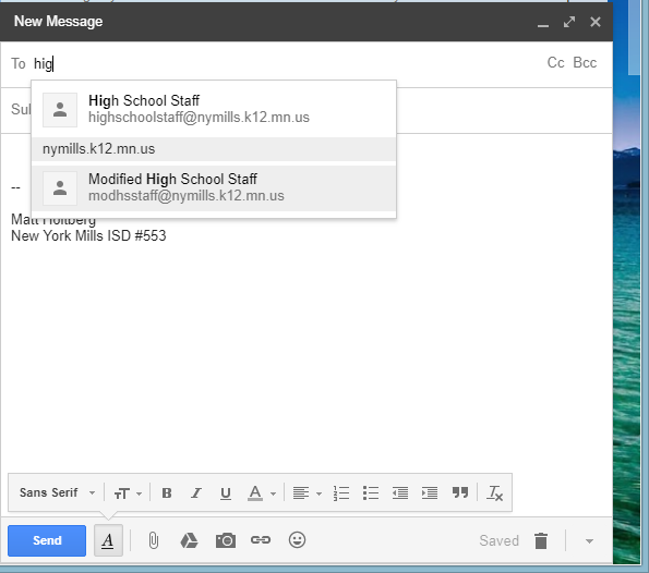 If you're seeing an email address in your auto-complete list that you don't want there anymore (such as the 'faculty' group addresses), use these steps to remove that contact.